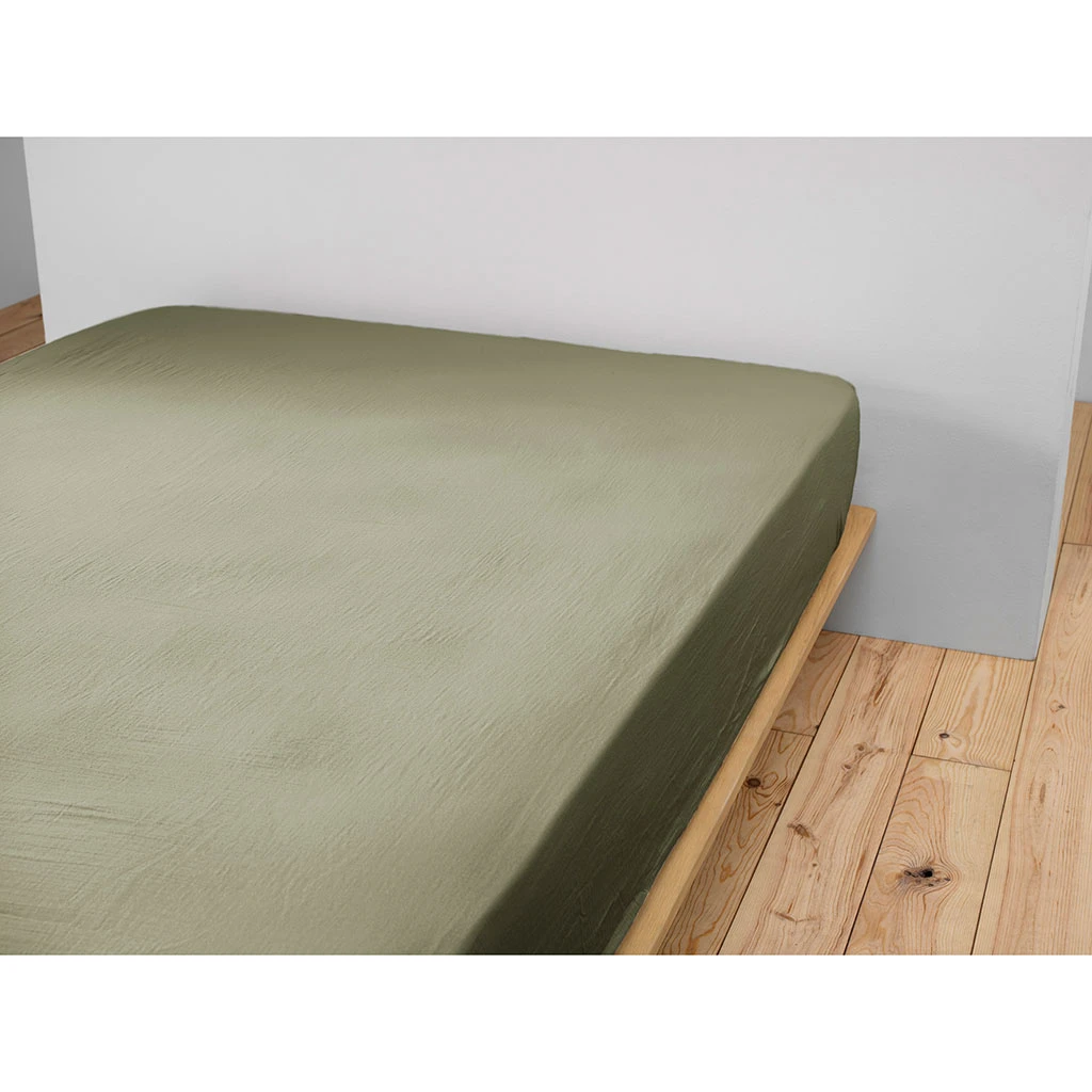 Découvrez le drap housse en gaze de coton couleur romarin, taille 140x190cm, de la collection Gaia.