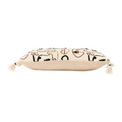 Housse De Coussin Rectangulaire Visage Brodée écru, Brun Et Noir 50x30cm – Terre Brulée