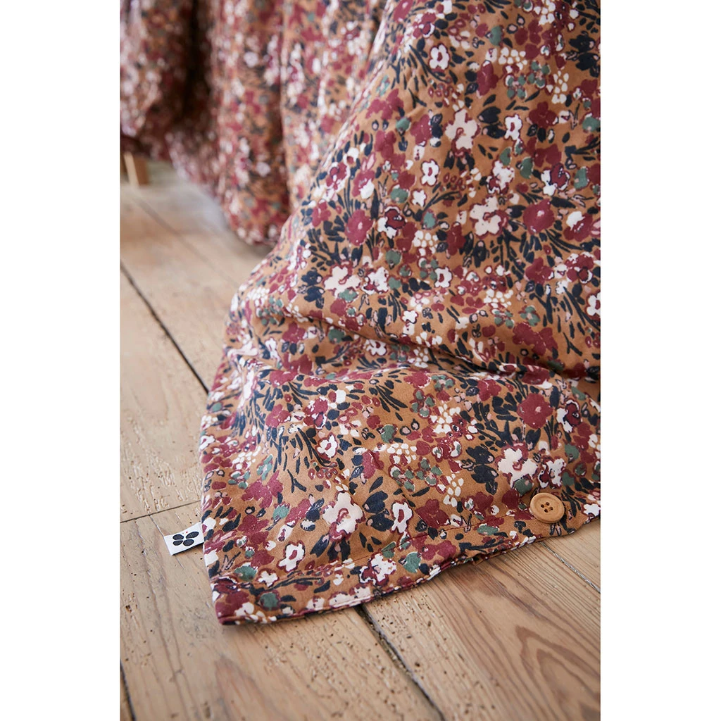 Offrez-vous le luxe d’une literie de qualité et transformez votre chambre en un havre de paix avec la housse de couette en gaze de coton imprimée camel 240x220cm – Capucine.