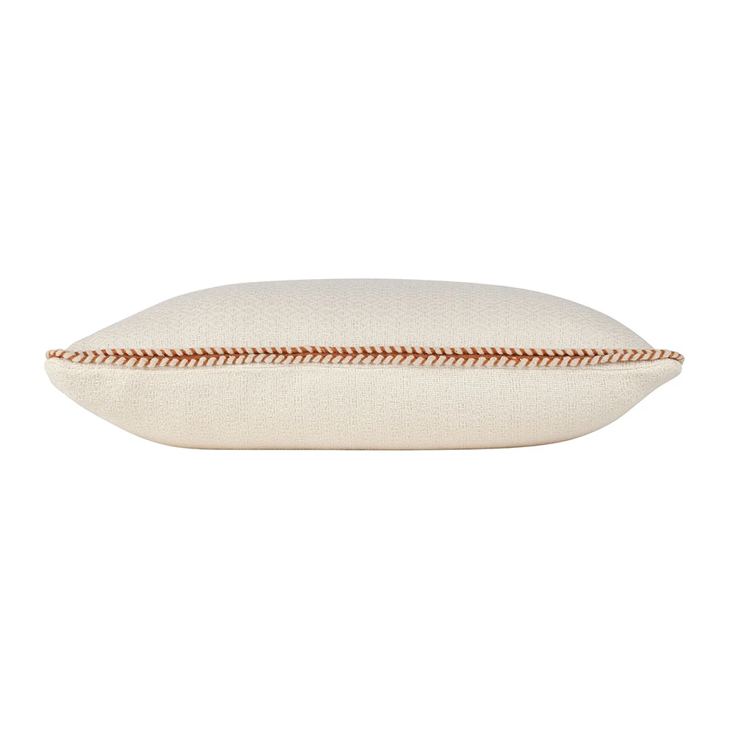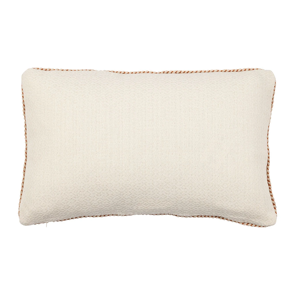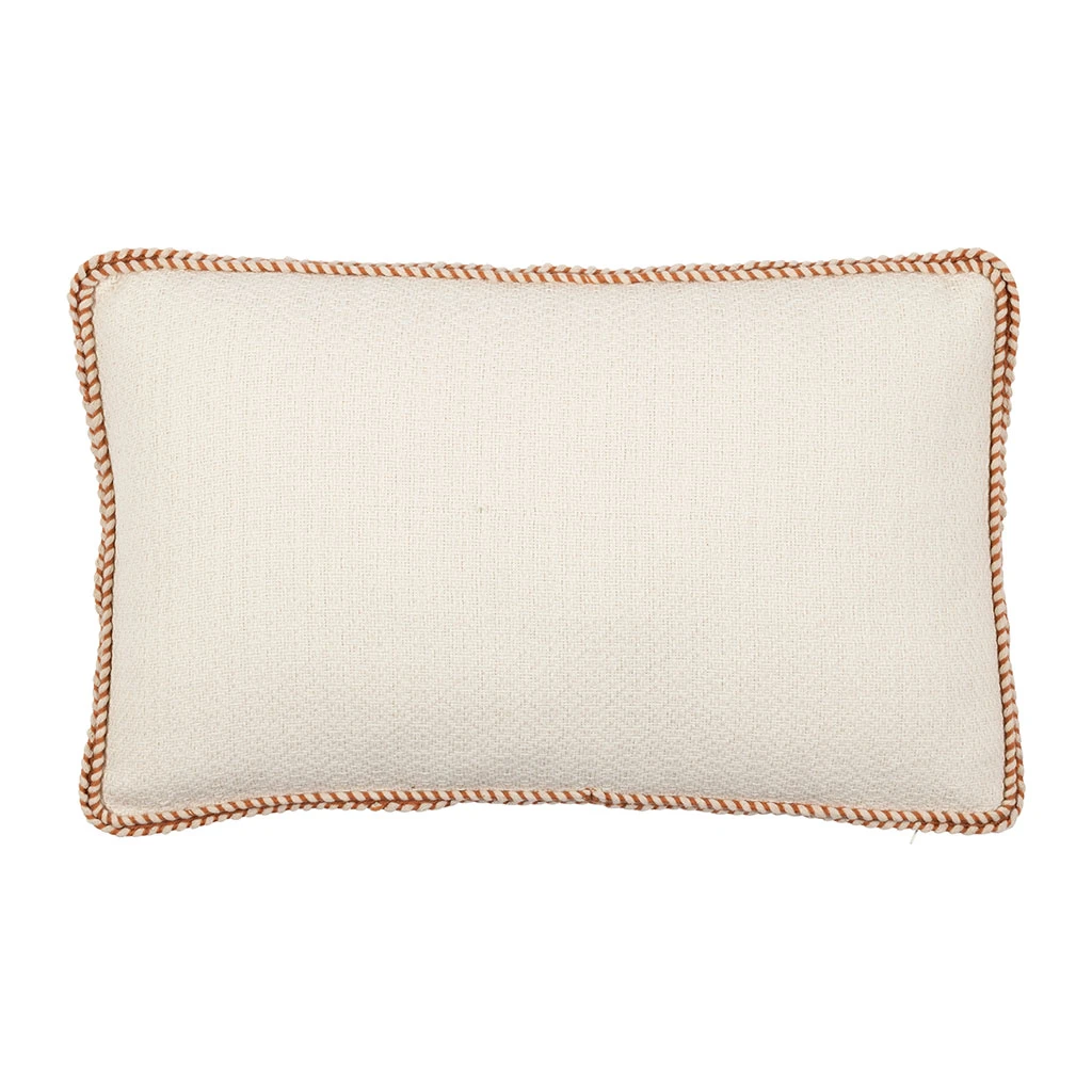 Le contour subtilement tressé en terracotta apporte une note chaleureuse et originale, idéale pour rehausser la sobriété de l’écru.