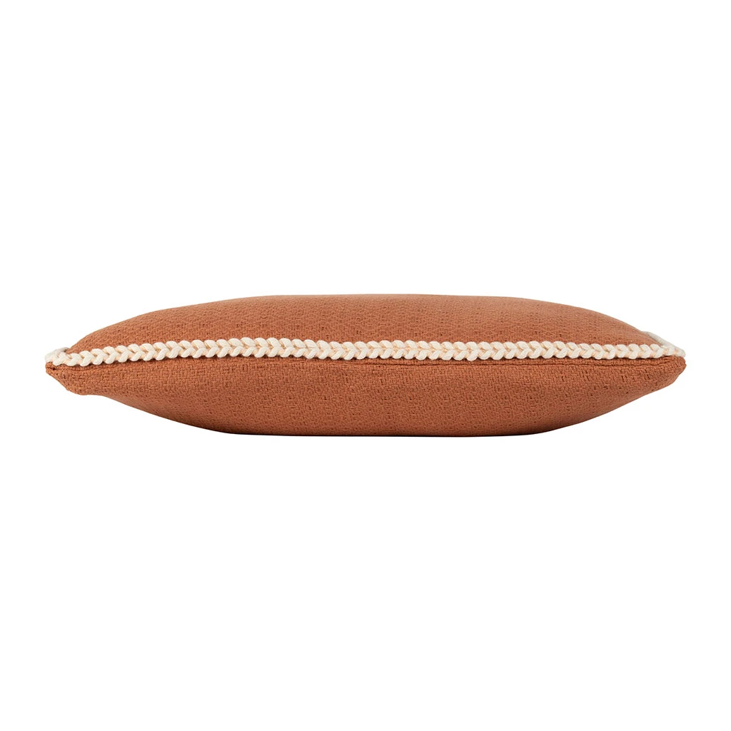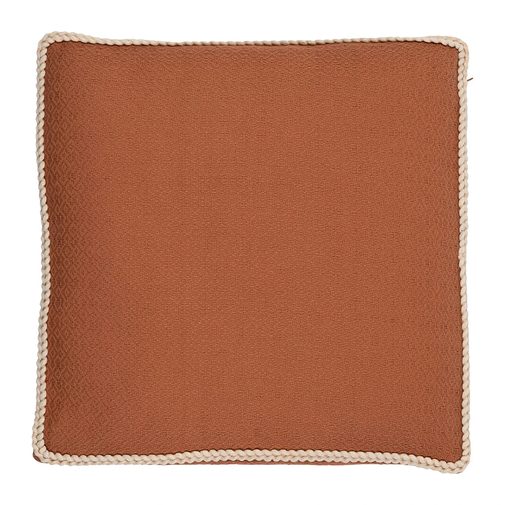 Le contour en corde écrue, finement tressé, vient subtilement contraster avec le terracotta pour un résultat à la fois raffiné et accueillant.